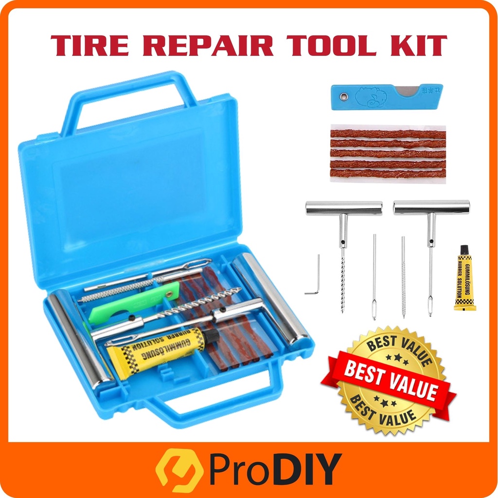 10 Best Tire Puncture Repair Kit (Reviews) in 2022 - DIYs.com BeTooll 22-piece tire repair kit for all tires If you're still on the hunt for something universal but a lot smaller and more simplified, this zipping kit from BeTooll might be the best option for you. It's an adhesive string-based repair kit that also features a miniature multi-tool and a strap for attaching it conveniently almost anywhere.